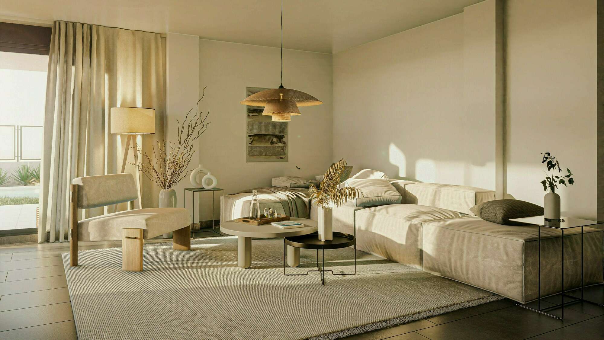 Chaque point peut être présenté avec une icône + coche verte, dans un fond beige élégant avec textes vert sauge.